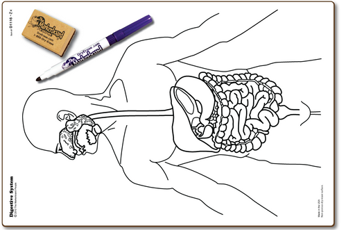 Digestive System Board with non-porous surfaces. Front side is lined and the back is a blank white dry erase surface. This features our "goof-proof...