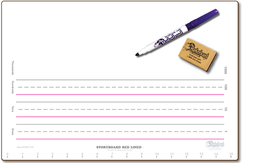Regular Price-$10.95, Clearance Price- $3.99Magnetic Red Lined Storyboard -11"x16"Double-sided board with lines on the front and blank dry erase on...